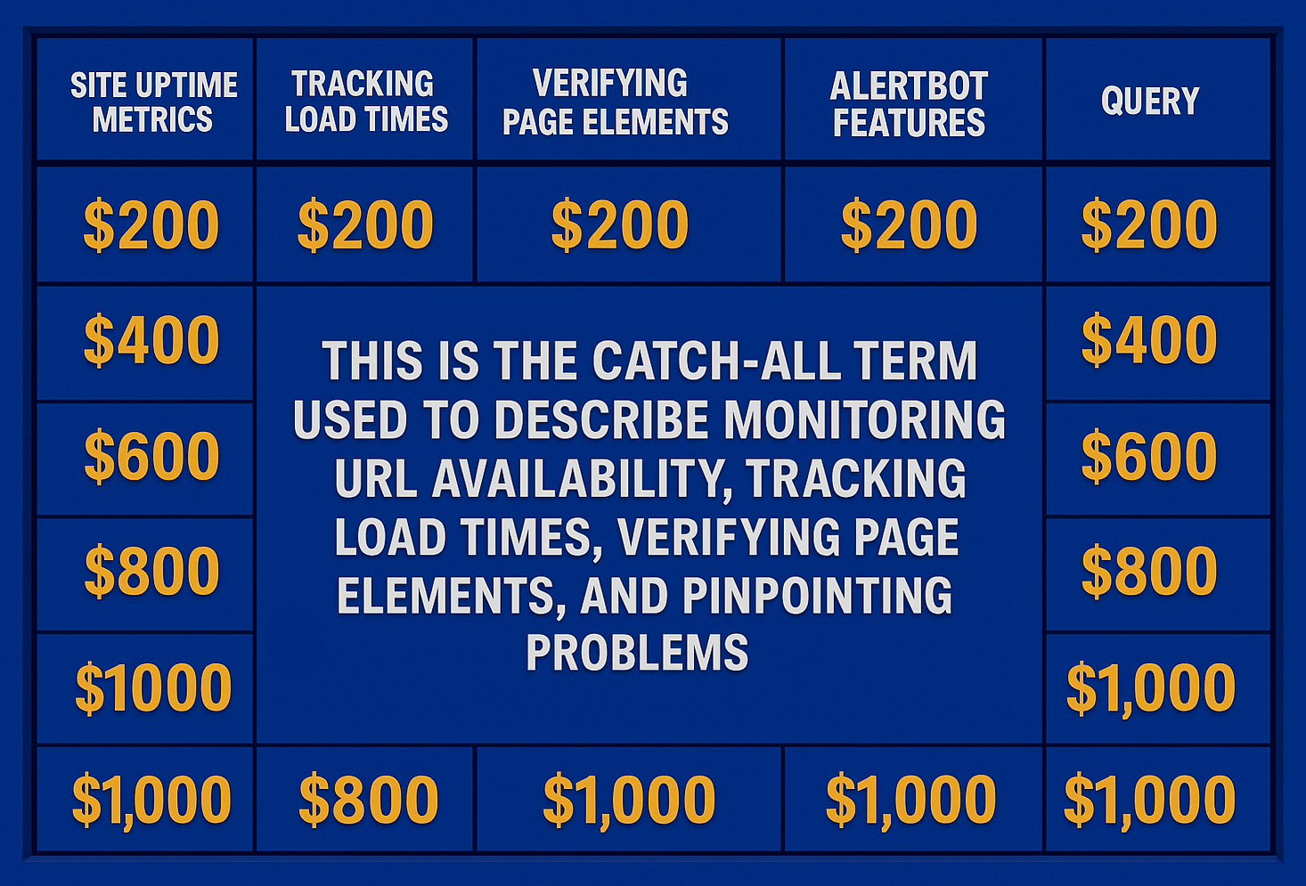 For the reliability evaluation of a website, we look for failure events (like when a page doesn’t fully load or it is completely down), and we look for what caused those failures.